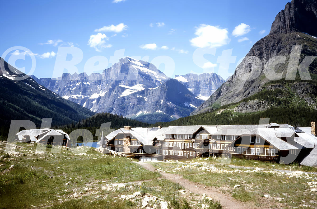 In the background rise some of Glacier’s most photographed mountains, including Mount Gould and the Continental Divide, still streaked with late-summer snow. Since opening, Many Glacier Hotel has been a base for hikers, climbers, horsepack trips, and sightseers drawn to the region’s glacial lakes, wildlife, and dramatic scenery.
